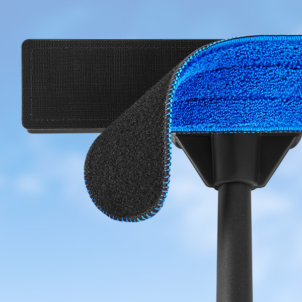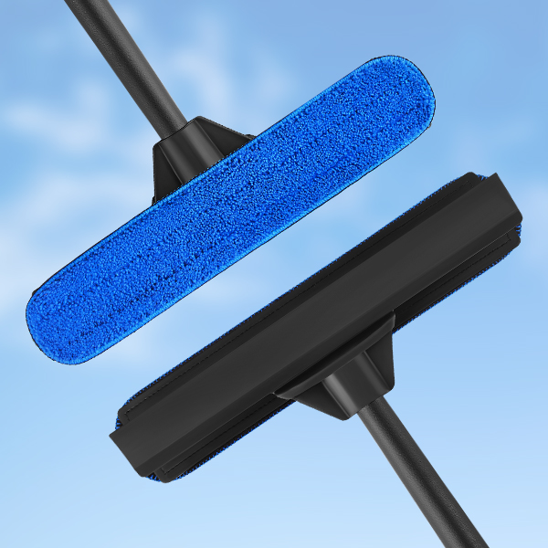 גם שוטף, גם מקרצף: הראש הכפול בנוי מצד אחד ממגב 100% גומי טבעי ומצד שני מבסיס למטלית מיקרופייבר נשלפת בקלות - איתה ניתן לקרצף את הלכלוך. כדי להחליף בין מגב למטלית, כל מה שצריך זה להפוך את מנקה החלונות לצד השני.